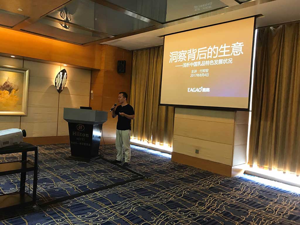 為了提供員工一個良好的學習氛圍,了解更多市場產品,提高員工業務技能,進一步為我們的客戶做好服務,2017年8月4日,安徽杜貝斯特食品工業有限公司特邀請北京意高策劃公司總經理付邦安老師給公司員工進行內部培訓。此次培訓主題:1,中國乳品特色發展狀況 2,如何做好新品上市。付老師針對目前國內常溫酸奶、低溫酸奶及乳酸菌飲料的市場現狀做了詳細闡述,并對中國特有的一些文化現象進行分享。